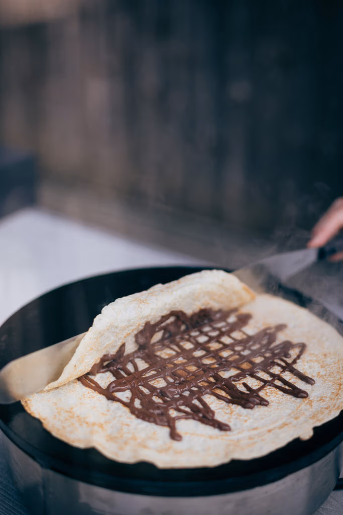 Bei Interesse frag uns an und wir stellen dir eine aktuelle Auswahl unserer Crêpes Füllungen zusammen. Abgestimmt auf deinen Anlass, deine Gäste und die Saison.