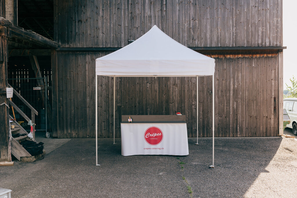 Der Catering-Stand ist modular aufgebaut. Ob draussen im Garten, mit unserem Zelt, drinnen im Eingang, im Partyraum oder sogar auf dem Balkon. Kein Problem, wir passen uns (fast) an jede Situation an.